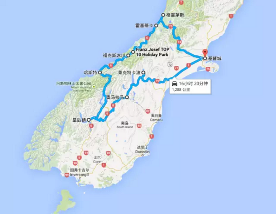 新西蘭租車(chē)自駕從基督城出發(fā)-格雷茅斯-霍基蒂卡-??怂贡?哈斯特-皇后鎮-奧瑪拉瑪-蒂卡普湖-最后再返回基督城